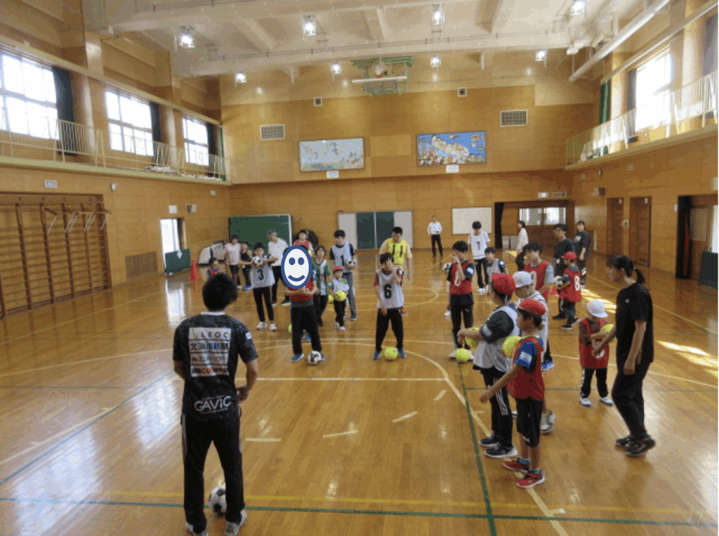 ・2グループに分かれて、ボールに親しんだり、フットサル競技を楽しんだりする。