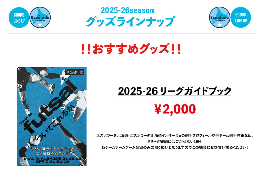 メットライフ生命Fリーグオフィシャルガイドブックや、2025シーズンの新しいグッズも取り揃えています!