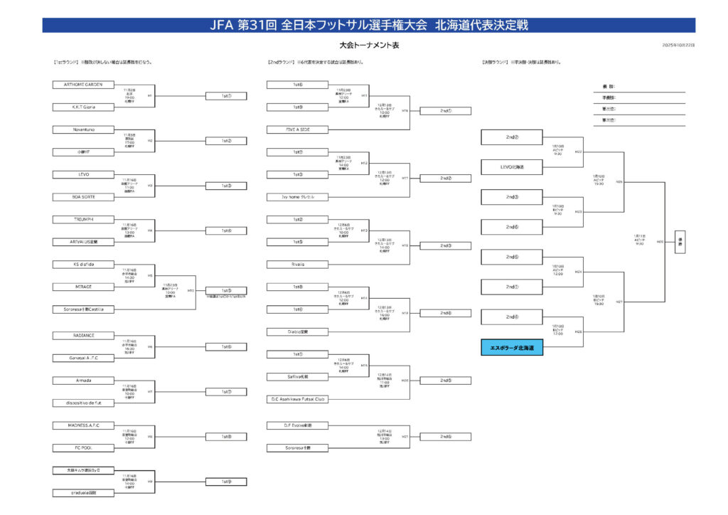 この度、エスポラーダ北海道はJFA第31回全日本フットサル選手権大会 北海道代表決定戦に出場することとなりましたのでお知らせいたします。
